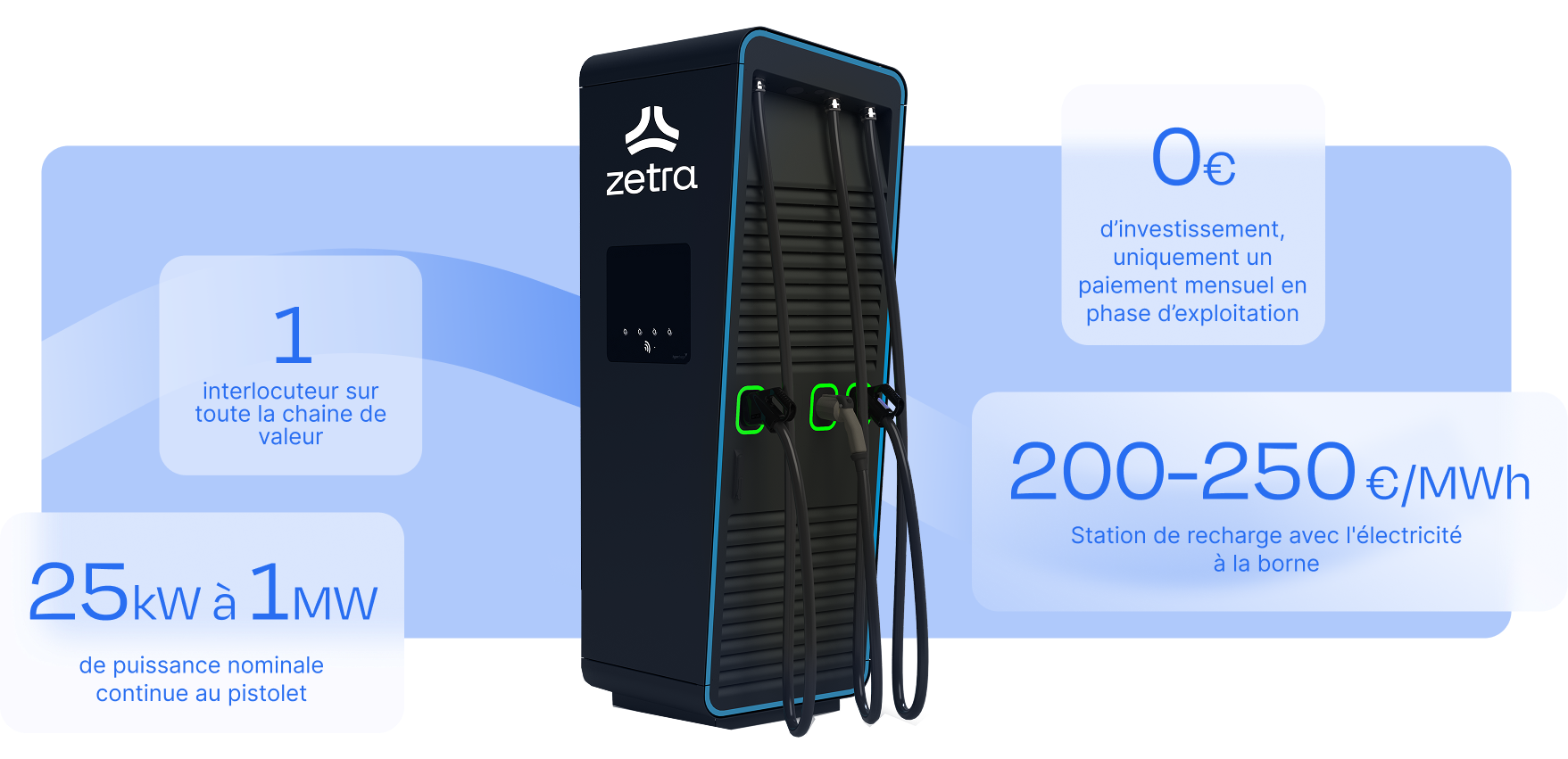 Développez avec Zetra vos stations de recharge conçues spécialement pour les véhicules lourds électriques et bénéficiez d’une offre clé-en-main pour électrifier vos plans de transport